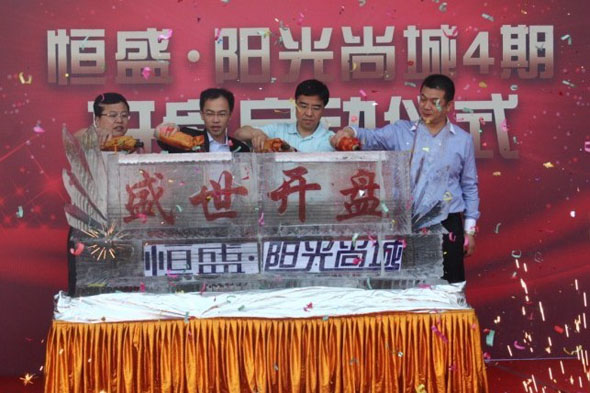 早上8點,銷售中心門前已經(jīng)車水馬龍、人頭攢動,眾多客戶聚集在銷售中心門口,儼然一片熱烈的節(jié)日景象。在開盤啟動儀式活動上,于洪區(qū)區(qū)長連茂君、恒盛控股首席執(zhí)行官程立雄、營銷管理中心總監(jiān)鄭群國、恒盛陽光鑫地(遼寧)公司董事長李曉斌及恒盛地產(chǎn)相關(guān)領(lǐng)導(dǎo)親臨活動現(xiàn)場。集團(tuán)各領(lǐng)導(dǎo)與區(qū)政府領(lǐng)導(dǎo)一同澆注“盛世開盤”冰雕,成功開啟慶典的啟動儀式,現(xiàn)場禮花與焰火紛燃,集團(tuán)領(lǐng)導(dǎo)精彩致辭,并與1000多位準(zhǔn)業(yè)主一道,共同見證這一輝煌的歷史時刻。